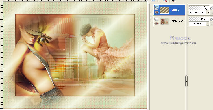 Placer le calque en mode Recouvrement et réduire l'opacité à 80%.
