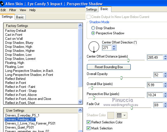 Effets>Modules Externes>Alien Skin Eye Candy 5 Impact - Perspeective Shadow.