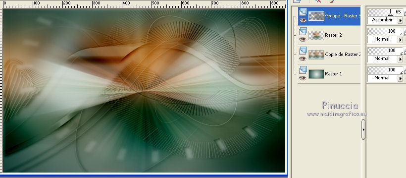 Placer le calque en mode Assombrir et réduire l'opacité à 65%.