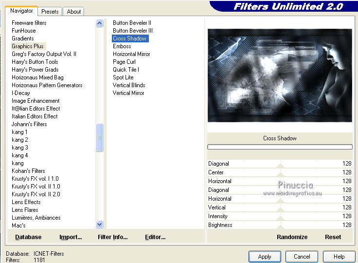 Effets>Modules Externes>Filters Unlimited 2.0 - Graphics Plus – Cross Shadow.