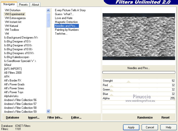 21. Effets>Modules Externes>Filters Unlimited 2.0 - VM Experimental – Needles and Pins.