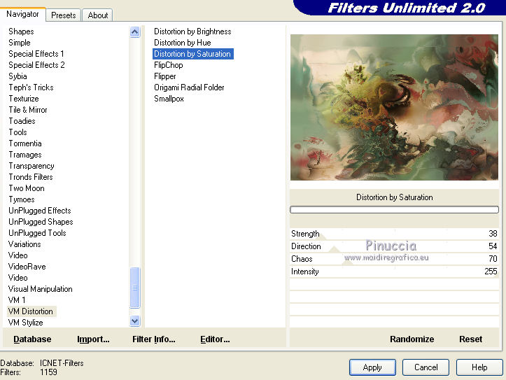 23. Effets>Modules Externes>Filters Unlimited 2.0 - VM Distortion – Distortion by Saturation.
