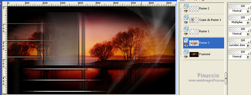 Placer le calque en mode Lumière dure et réduire l'opacité à 60%.