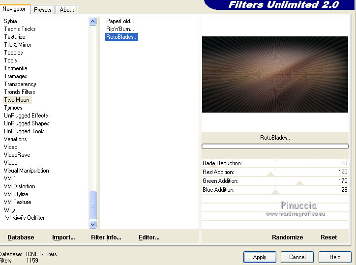 Effets>Modules Externes>Filters Unlimited 2.0 - Two Moon – RotoBlades.