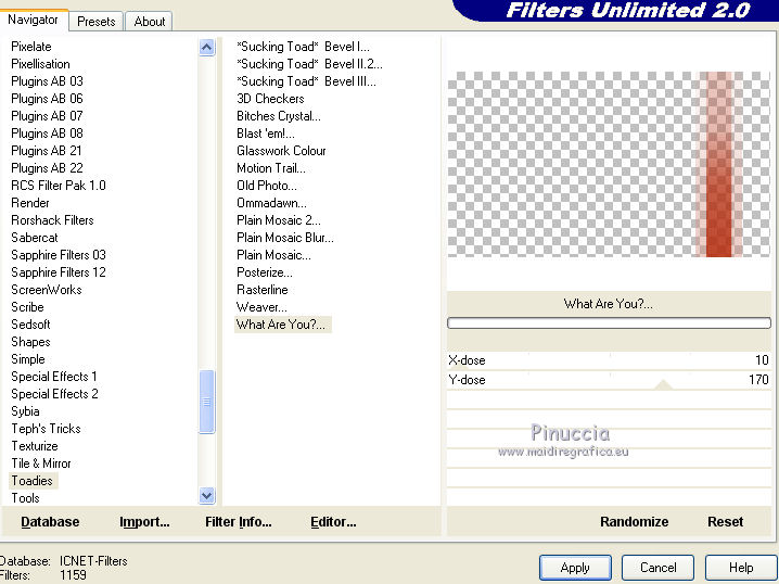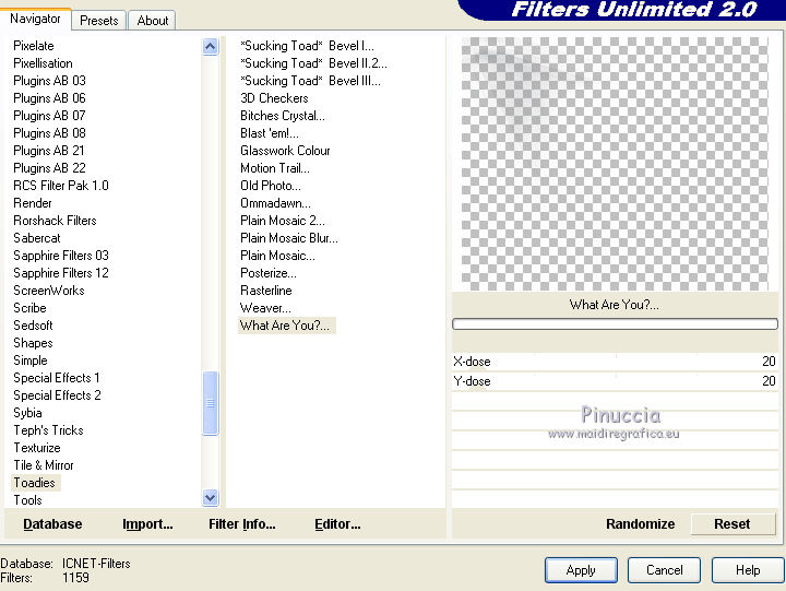 34. Effets>Modules Externes>Filters Unlimited 2.0 - Toadies – What Are You? – par défaut.