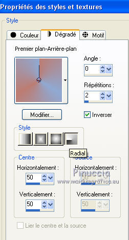 Préparer un dégradé de premier plan/arrière plan, style Radial.