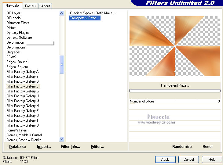 Effets>Modules Externes>Filters Unlimited 2.0 - Filter Factory Gallery E – Transparent Pizza.