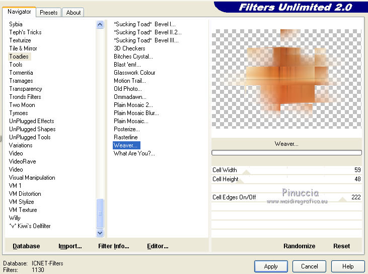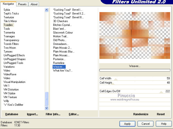 Effets>Modules Externes>Filters Unlimited 2.0 - Toadies – Weaver.