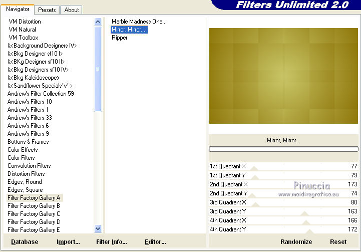 4. Effets>Modules Externes>Filters Unlimited 2.0 - Filter factory Gallery A - Mirror,Mirror.