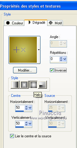 Préparer en avant plan un dégradé de premier plan/arrière plan, style Halo, inverser coché.