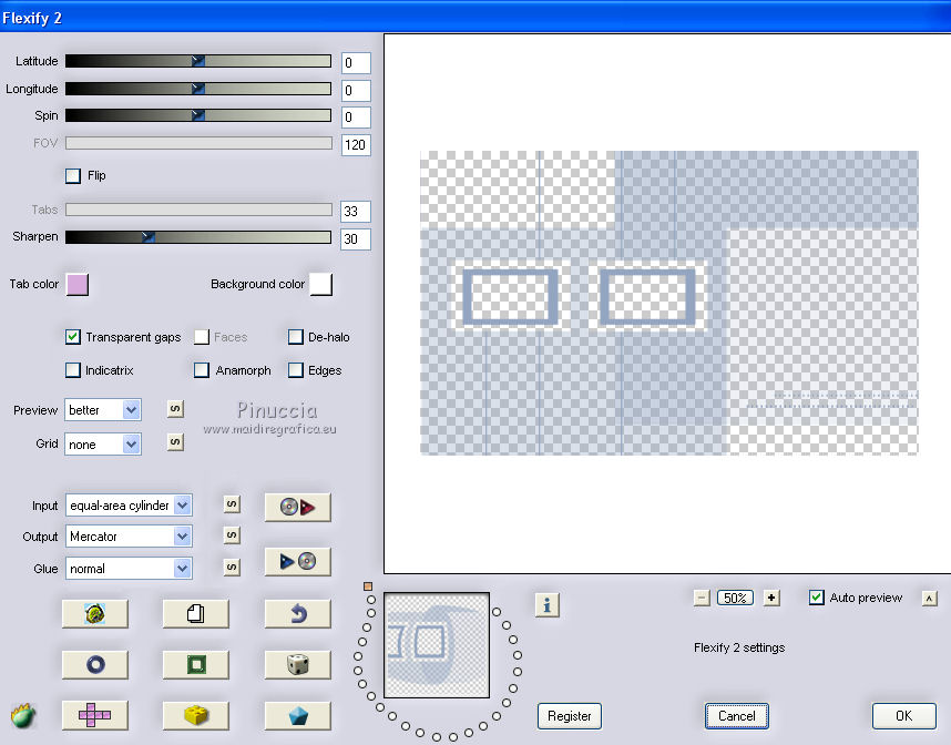 7. Effets>Effets de réflexion>Miroir Rotatif, par défaut.