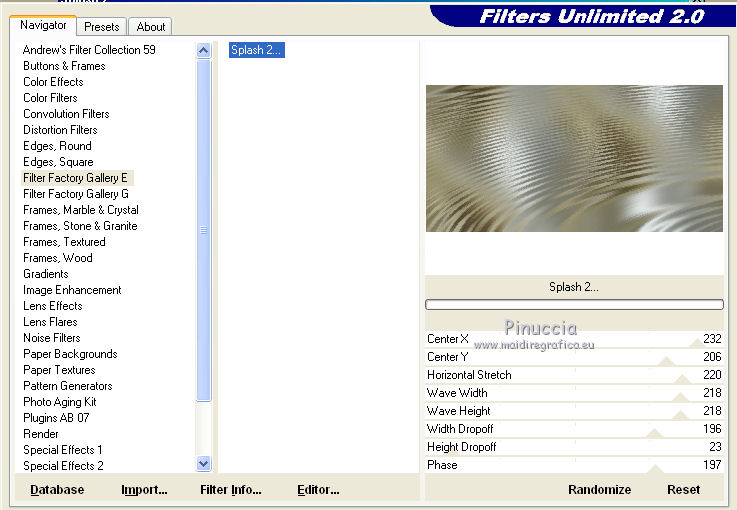 6. Effets>Modules Externes>Filters Unlimited 2.0 - Filter Factory Gallery E - Splash 2.