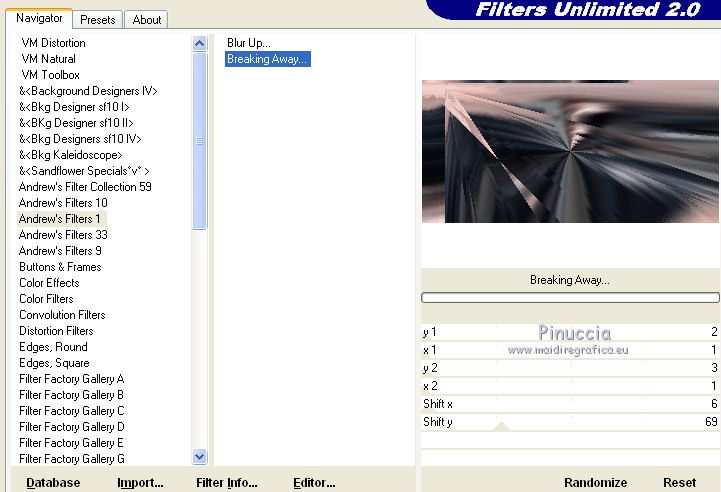 5. Effets>Modules Externes>Filters Unlimited - Andrew's Filter 1 - Breaking Away.