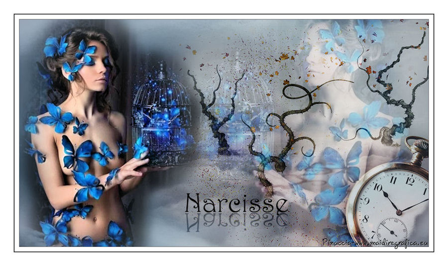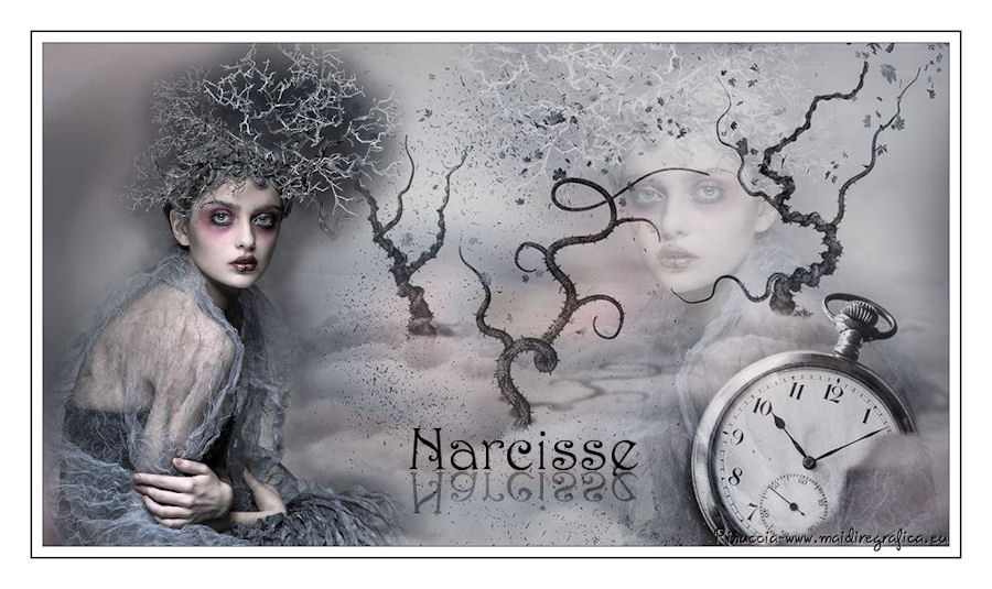 écrire "Narcisse" et positionner le texte en bas au centre.