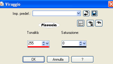 Regola>Tonalità e saturazione>Viraggio, con i settaggi precedenti.