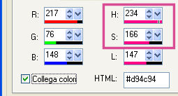 Prendi nota dei valori di Tonalità (H) e Saturazione (S) del colore scuro di sfondo. Il mio: