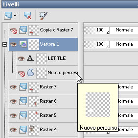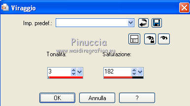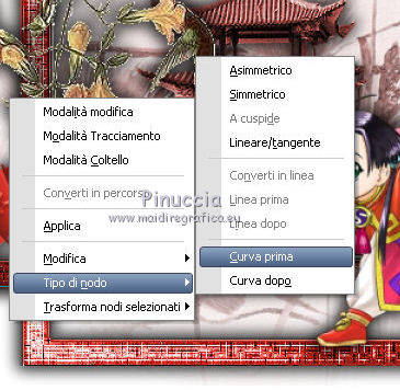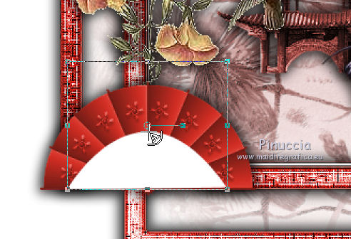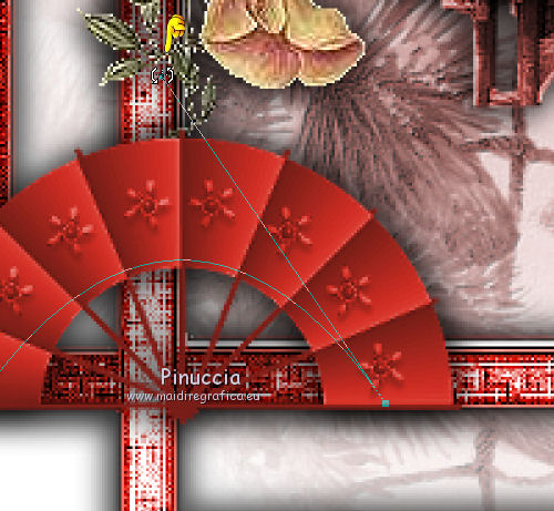 qui puoi trovare qualche risposta ai tuoi dubbi. Se l'argomento che ti interessa non è presente, ti prego di segnalarmelo. Per tradurre questo tutorial ho usato PSP X, ma può essere eseguito anche con le altre versioni di PSP. Occorrente: Materiale qui ![]() Imposta il colore di primo piano con #c32f21. 1. Apri una nuova immagine BIANCA 600 X 600 pixels. 2. Apri "scenery53_misted by dragonblu220807" e vai a Modifica>Copia. Torna al tuo lavoro e vai a Modifica>Incolla come nuovo livello. Regola>Tonalità e saturazione>Viraggio. ![]() 3. Apri "kader" e vai a Modifica>Copia. Torna al tuo lavoro e vai a Modifica>Incolla come nuovo livello. Regola>Tonalità e saturazione>Viraggio. ![]() Regola>Messa a fuoco>Accentua messa a fuoco. Effetti>Effetti 3D>Sfalsa ombra. ![]() Ripeti l'Effetto Sfalsa ombra, invertendo i settaggi verticale e orizzontale. ![]() 4. Apri "fly-orient24" e vai a Modifica>Copia. Torna al tuo lavoro e vai a Modifica>Incolla come nuovo livello. Immagine>Ridimensiona, al 65%, tutti i livelli non selezionato. Regola>Tonalità e saturazione>Viraggio. ![]() Regola>Messa a fuoco>Metti a fuoco. Effetti>Effetti 3D>sfalsa ombra, come al punto 3. 5. Apri "kleinvogel.tub" e vai a Modifica>Copia. Torna al tuo lavoro e vai a Modifica>Incolla come nuovo livello. Spostalo in alto a sinistra, sul bordo.Regola>Messa a fuoco>Metti a fuoco. Effetti>Effetti 3D>Sfalsa ombra, con i settaggi precedenti. 6. Apri "SkyScrap-decoration-flower" e vai a Modifica>Copia. Torna al tuo lavoro e vai a Modifica>Incolla come nuovo livello. Spostalo nell'angolo in alto a destra.Regola>Tonalità e saturazione>Viraggio. ![]() Effetti>Effetti 3D>Sfalsa ombra: ![]() 7. Apri "fly-orient08" e vai a Modifica>Copia. Torna al tuo lavoro e vai a Modifica>Incolla come nuovo livello. Spostalo nella cornice, in basso e un po' più a destra.Regola>Messa a fuoco>Metti a fuoco. Effetti>Effetti 3D>Sfalsa ombra, come al punto 3. 8. Apri "Tantrum-Feng Shui zen Fan 1" e vai a Modifica>Copia. Torna al tuo lavoro e vai a Modifica>Incolla come nuovo livello. Immagine>Ridimensiona, una volta al 50% e una volta al 75%, tutti i livelli non selezionato. Regola>Tonalità e saturazione>Viraggio: ![]() Effetti>Effetti 3D>Sfalsa ombra, come al punto 3. 9. Livelli>Duplica e chiudi questo livello. Attiva il livello sottostante e sposta il ventaglio un po' più in alto (vedi il mio esempio).Imposta il colore di sfondo con il bianco. Attiva lo strumento Penna con i seguenti settaggi.![]() Clicca sul punto di partenza a sinistra ![]() e clicca sul punto di partenza a destra: questo unirà i due punti. ![]() Clicca con il tasto destro del mouse e nel menu che apparirà seleziona Tipo di nodo>Curva priva. ![]() Porta il cursore sulla linea e quando visualizzi le due frecce arrotondate, ![]() tenendo premuto il tasto sinistro del mouse trascina questo punto in alto e fermati quando l'arco avrà superato l'arco del ventaglio. ![]() Attiva lo strumento Testo ,passa il mouse sull'arco e quando vedrai la A sottolineata da una mezza luna. ![]() clicca con il mouse per far apparire la finestra del testo. Scrivi la parola "little" e Applica. Nella paletta dei livelli apri il menu del livello Vettore cliccando sul segno più, e chiudi il livello "Nuovo percorso". ![]() Livelli>Converti in livello raster e l'arco che ti è servito da guida sparirà. Effetti>Effetti 3D>Sfalsa ombra. ![]() Apri e attiva il livello della copia del tube e ripeti i passaggi precedenti per scrivere le parole "china girl". 12. Aggiungi il tuo nome e/o il tuo watermark. 13. Controlla che ogni cosa sia al punto giusto. Livelli>Unisci>Unisci tutto e salva in formato jpg. ![]() Se hai problemi o dubbi, o trovi un link non funzionante, o anche soltanto per saluto, scrivimi 3 Gennaio 2010 |