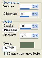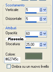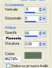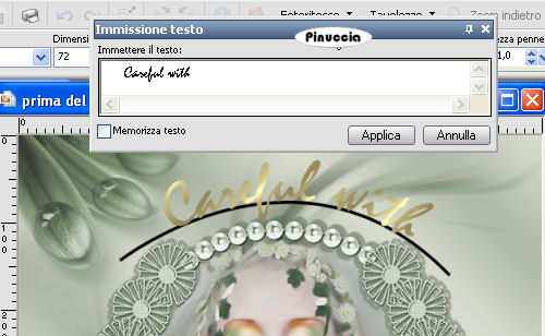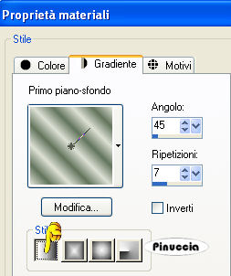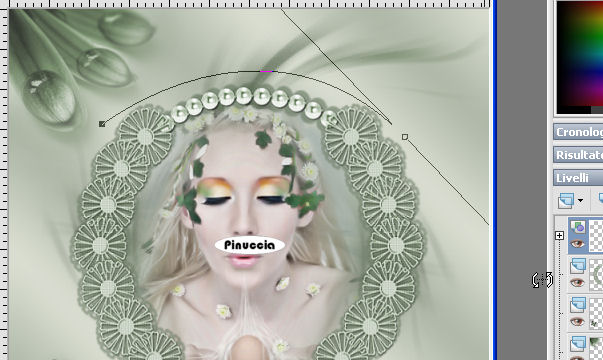 qui puoi trovare qualche risposta ai tuoi dubbi. Se l'argomento che ti interessa non è presente, ti prego di segnalarmelo. Per tradurre questo tutorial ho usato PSP X, ma può essere eseguito anche con le altre versioni di PSP. Occorrente: Materiale qui Filtri: Penta.com - Jeans qui Imposta il colore di primo piano con #dde1d5, e il colore di sfondo con #62745c, o scegli un colore scuro e un colore chiaro dal tuo tube. 1. Apri una nuova immagine trasparente 600 x 600 pixels, e riempila con il colore chiaro.2. Livelli>Nuovo livello raster. Passa il colore di primo piano a Gradiente lineare: ![]() Riempi il livello con il gradiente.Regola>Sfocatura>Sfocatura gaussiana - raggio 15. ![]() Abbassa l'opacità di questo livello al 40%. 3. Apri Backgr2 e vai a Modifica>Copia. Torna al tuo lavoro e vai a Modifica>Incolla come nuovo livello. Spostalo nell'angolo in alto a destra.Regola>tonalità e saturazione>Viraggio: ![]() Livelli>Duplica. Immagine>Rifletti. Immagine>Capovolgi. Livelli>Unisci>Unisci giù. Abbassa l'opacità di questo livello al 75%. 4. Apri lo scrapkit e attiva il livello "Circels". Modifica>Copia. Torna al tuo lavoro e vai a Modifica>Incolla come nuovo livello. 5. Attiva nuovamente lo scrapkit e il livello "Flowers" Modifica>Copia. Torna al tuo lavoro e vai a Modifica>Incolla come nuovo livello. I fiori sono già correttamente posizionati, non occorre spostarli. Livelli>Unisci>Unisci giù. Regola>Tonalità e saturazione>Viraggio, come al punto 3. Immagine>Ridimensiona, una volta all'85% e una volta al 90%, tutti i livelli non selezionato. Effetti>Effetti 3D>sfalsa ombra, con i seguenti settaggi, colore #62745c. ![]() ripeti l'Effetto >sfalsa ombra, invertendo i valori verticale e orizzontale. ![]() Regola>Messa a fuoco>Metti a fuoco. 6. Apri il tube della donna e vai a Modifica>Copia. Torna al tuo lavoro e vai a Modifica>Incolla come nuovo livello. Immagine>Ridimensiona, una volta al 75%, una volta all'85% e una volta al 95%, tutti i livelli non selezionato. Regola>Messa a fuoco>Metti a fuoco. Effetti>Effetti 3D>Sfalsa ombra, con i seguenti settaggi, colore #62745c. ![]() Livelli>Disponi>Sposta giù. 7. Apri il tube Marif_2006_novembre_misted_fleurs0118 e vai a Modifica>Copia. Torna al tuo lavoro e vai a Modifica>Incolla come nuovo livello. Regola>tonalità e saturazione>Viraggio, con i settaggi precedenti. Immagine>Ridimensiona, 3 volte al 75%, tutti i livelli non selezionato. Immagine>rifletti. Sposta il tube nell'angolo in alto a sinistra.Effetti>Effetti 3D>Sfalsa ombra, come al punto 6. Abbassa l'opacità di questo livello all'85%. 8. Apri il tube della farfalla e vai a Modifica>Copia. Torna al tuo lavoro e vai a Modifica>Incolla come nuovo livello. Immagine>Ridimensiona, all'85%, tutti i livelli non selezionato. Posiziona la farfalla dove preferisci.Effetti>Effetti 3D>sfalsa ombra, con i settaggi precedenti. 9. Chiudi il colore di sfondo. Attiva lo strumento Penna , disegna da punto a punto (la dimensione della linea a tua scelta, non ha importanza ai fini del risultato):![]() Clicca con il tasto sinistro del mouse nel punto di partenza della linea curva che dovrai tracciare come guida per il testo: ![]() Quindi, clicca nel punto di arrivo: ![]() e sempre tenendo premuto il tasto sinistro, muovi il mouse cercando di disegnare una curva regolare (uscendo anche dai confini della tela): ![]() Quando sei soddisfatto della tua curva, rilascia il tasto del mouse e dovresti avere qualcosa di simile: ![]() 10. Attiva lo strumento Testo , scegli un font,chiudi il colore di primo piano e imposta il colore di sfondo con un motivo oro. Passa il mouse sulla curva e quando vedi apparire la lettera A sottolineata da una mezza luna: ![]() clicca con il tasto sinistro del mouse per aprire la finestra del testo. Scrivi il tuo testo controllando la posizione (nell'esempio, puoi vedere che ho aggiunto degli spazi prima del testo per centrarlo). ![]() Quando sei soddisfatto, clicca Applica per confermare il testo. Nella paletta dei livelli, clicca sul segno più del livello Vettore per aprire il menu e nascondi il livello "nuovo percorso": ![]() Livelli>Converti in livello raster, e la curva che ti è servita da traccia per il testo sparirà. Applica un leggero Effetto Sfalsa ombra, a tua scelta. 11. Ripeti i passaggi 9 e 10, per scrivere un altro testo in basso (questa volta la curva sarà verso il basso): ![]() 12. Aggiungi il tuo nome e/o il tuo watermark. Livelli>Unisci>Unisci tutto. 13. Immagine>Aggiungi bordatura, 1 pixel, simmetriche, con il colore scuro. Immagine>Aggiungi bordatura, 4 pixels, simmetriche, con un colore contrastante. Seleziona il bordo con la bacchetta magica ![]() e riempilo con un motivo oro.Effetti>Plugins>Penta.com - Jeans, con i settaggi standard: ![]() Effetti>Effetti 3D>Smusso a incasso: ![]() Immagine>Aggiungi bordatura, 1 pixel, simmetriche, con il colore scuro. 14. Hai finito. Puoi salvare in formato jpg. Se hai problemi o dubbi, o trovi un link non funzionante, o anche soltanto per dirmi se questo tutorial ti è piaciuto, scrivimi. 21 Maggio 2009 |