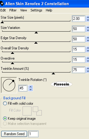 Ripeti l'Effetto Constellation, con gli stessi settaggi, ma cliccando una volta su Random Seed.