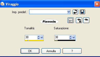 Regola>Tonalità e Saturazione>Viraggio, con i settaggi precedenti.