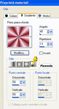 Passa il colore di primo piano a Gradiente di primo piano/sfondo, stile radiale, con i seguenti settaggi: