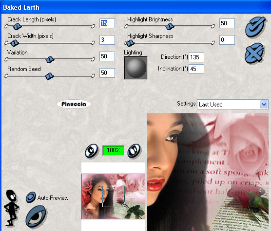 Effetti>Plugins>Xenofex 1.0 - Baked Earth, con i seguenti settaggi.