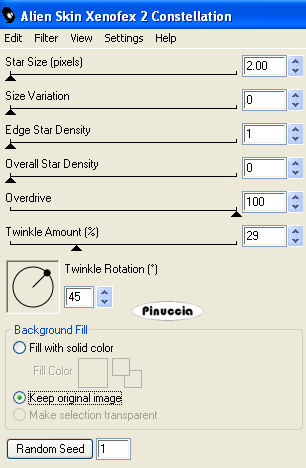 Ripeti l'Effetto Constellation, con gli stessi settaggi, ma cliccando una volta su Random Seed.