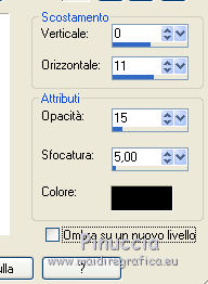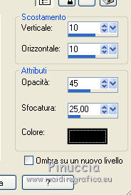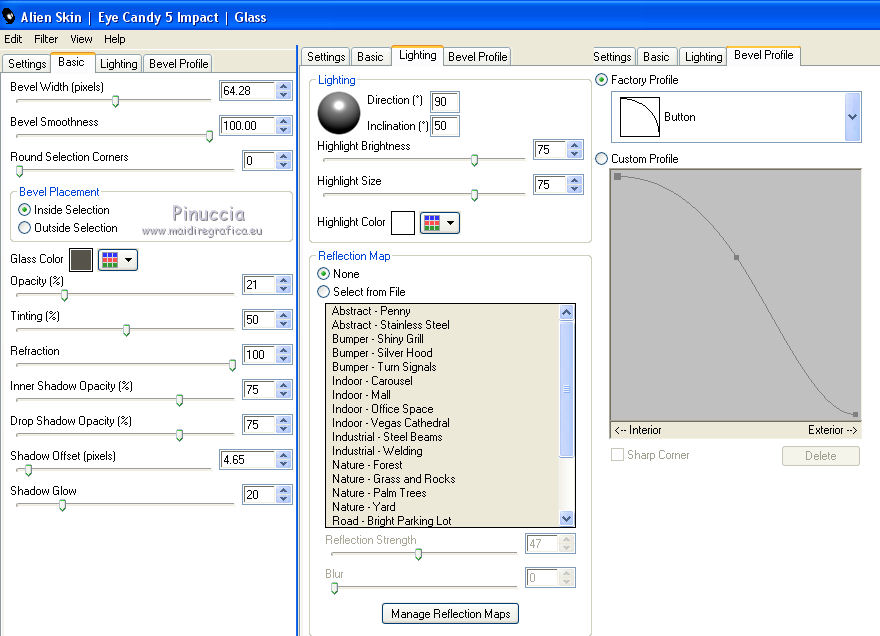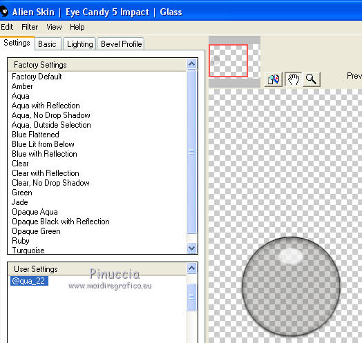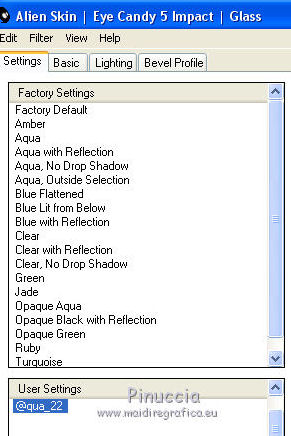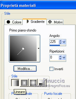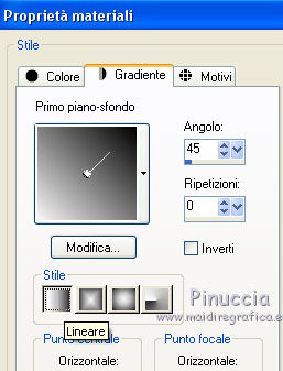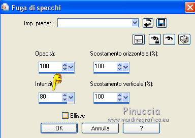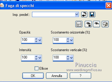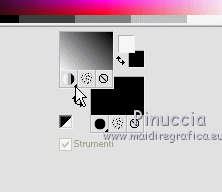spingi i nodi centrali in alto e in basso![]() fino ai bordi ![]() 10. Cambia la modalità di miscelatura di questo livello in Sovrapponi, e abbassa l'opacità al 50%. ![]() 11. Livelli>Duplica. Lascia la modalità e l'opacità del livello originale. ![]() 12. Effetti>Effetti di immagine>Motivo unico, con i settaggi precedenti. ![]() 13. Livelli>Nuovo livello raster. Livelli>Disponi>Porta sotto. 14. Passa il colore di primo piano a Gradiente di primo piano/sfondo, stile Lineare. ![]() Riempi il livello con il gradiente.14. Effetti>Plugins>L&K's - L&K Paris, con i settaggi standard. ![]() 15. Livelli>Duplica. Immagine>Rifletti. Immagine>Capovolgi. 16. Cambia la modalità di miscelatura di questo livello in Sovrapponi. ![]() 17. Attiva nuovamente il livello superiore. 18. Livelli>Nuovo livello raster. Selezione>Carica/Salva selezione>Carica selezione da canale alfa. La selezione sélection#1 è subito disponibile. Devi soltanto cliccare Carica. ![]() 19. Riporta il colore di primo piano a Colore: apri il menu della paletta e seleziona Colore ![]() Abbassa l'opacità dello strumento Riempimento a 50 e riempi la selezione con il colore di primo piano #f6f6f6.![]() Selezione>Deseleziona. 20. Effetti>Plugins>Filters Unlimited 2.0 - Filter Factory Gallery M - Picasso's Last Word, con i settaggi standard. ![]() 21. Attiva lo strumento Pennello ![]() cerca e seleziona il pennello @qua_deco_bip2 ![]() Applica il pennello nell'angolo in alto a sinistra, cliccando con il tasto destro del mouse, per usare il colore nero di sfondo. ![]() 22. Applica il pennello una seconda volta nell'angolo in basso a sinistra, sempre cliccando con il tasto destro del mouse per usare il colore nero di sfondo. ![]() Dovresti avere questo. ![]() 23. Effetti>Effetti di immagine>Motivo unico, con i settaggi precedenti. ![]() 24. Effetti>Effetti di bordo>Aumenta di più. 25. Livelli>Duplica, per accentuare il colore, e dovresti avere questo. ![]() 26. Livelli>Nuovo livello raster. Selezione>Carica/Salva selezione>Carica selezione da canale alfa. Apri il menu delle selezioni e carica sélection#2. ![]() 27. Riporta l'opacità dello strumento Riempimento a 100 e riempi la selezione con il colore nero di sfondo #000000.28. Selezione>Modifica>Contrai - 2 pixels. ![]() Premi sulla tastiera il tasto CANC ![]() 29. Abbassa l'opacità dello strumento Riempimento a 10, e riempi la selezione di nuovo con il colore nero.![]() 30. Effetti>Plugins>Alien Skin Eye Candy 5 Impact - Glass. Seleziona il preset @qua_22 e ok. ![]() Questi i settaggi che puoi copiare in caso di problemi con il preset. ![]() Selezione>Deseleziona. 31. Effetti>Effetti di riflesso>Fuga di specchi. ![]() 32. Livelli>Nuovo livello raster. Selezione>Carica/Salva selezione>Carica selezione da canale alfa. Apri il menu delle selezioni e carica sélection#3. ![]() 33. Riporta l'opacità dello strumento Riempimento a 100, e riempi la selezione con il colore nero.Selezione>Modifica>Contrai - 2 pixels. Premi sulla tastiera il tasto CANC ![]() Abbassa nuovamente l'opacità dello strumento Riempimento a 10 e riempi la selezione con il colore nero.Effetti>Plugins>Alien Skin Eye Candy 5 Impact - Glass, con i settaggi precedenti. ![]() Selezione>Deseleziona. 34. Effetti>Effetti di riflesso>Fuga di specchi. ![]() 35. Dovresti avere questo. ![]() 36. Livelli>Nuovo livello raster. Selezione>Carica/Salva selezione>Carica selezione da canale alfa. Apri il menu delle selezioni e carica nuovamente sélection#2. ![]() 37. Riporta il colore di primo piano a Gradiente: come prima, apri il menu della paletta e seleziona Gradiente. ![]() Riporta l'opacità dello strumento Riempimento a 100 e riempi la selezione con il gradiente.38. Effetti>Plugins>Alien Skin Eye Candy 5 Impact - Glass, con i settaggi precedenti. ![]() Selezione>Deseleziona. 39. Livelli>Nuovo livello raster. Selezione>Carica/Salva selezione>Carica selezione da canale alfa. Apri il menu delle selezioni e carica nuovamente sélection#3. ![]() 40. Riempi la selezione con il gradiente.Effetti>Plugins>Alien Skin Eye Candy 5 Impact Glass, con i settaggi precedenti. Selezione>Deseleziona. 41. Apri il tube babette-0153-15, e vai a Modifica>Copia. Torna al tuo lavoro e vai a Modifica>Incolla come nuovo livello. Immagine>Ridimensiona, al 60%, tutti i livelli non selezionato. 42. Effetti>Effetti di immagine>Scostamento. ![]() 43. Effetti>Effetti 3D>Sfalsa ombra. ![]() 44. Immagine>Aggiungi bordatura, 2 pixels, simmetriche, colore bianco #ffffff. Immagine>Aggiungi bordatura, 35 pixels, simmetriche, colore nero #000000. 45. Attiva lo strumento Bacchetta magica ![]() e clicca nel bordo nero per selezionarlo. 46. Cambia i settaggi del gradiente. ![]() Riempi la selezione con il gradiente.47. Selezione>Inverti. Effetti>Effetti 3D>Sfalsa ombra. ![]() Selezione>Deseleziona. 48. Immagine>Aggiungi bordatura, 2 pixels, simmetriche, colore bianco. 49. Firma il tuo lavoro su un nuovo livello. 50. Livelli>Unisci>Unisci tutto e salva in formato jpg. Per questa versione ho usato un tube di Cibi ![]() ![]() Le vostre versioni. Merci ![]() Olimpia ![]() ![]() Seval ![]() Se hai problemi o dubbi, o trovi un link non funzionante, o anche soltanto per un saluto, scrivimi. 10 Maggio 2015 |