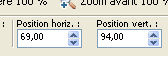 Placer Position horiz.: 69,00 et Position vert.: 94,00.