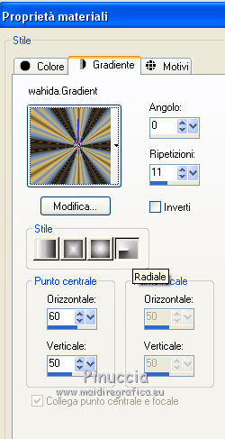 Passa il colore di primo piano a Gradiente e seleziona il Gradiente Sah Wahida, stile Radiale