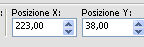 e imposta Posizione X: 223,00 e Posizione Y: 38,00.