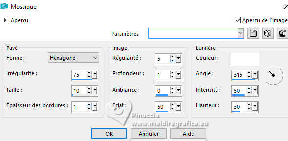 Effets>Effets de textures>Mosaïque, comme précédemment.