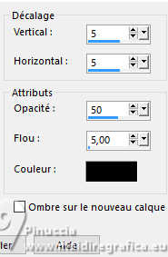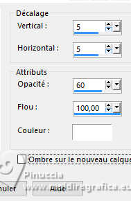 Effets>Effets 3D>Ombre portée, réglages en mémoire