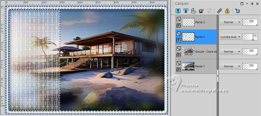 Placer le calque en mode Lumière dure et réduire l'opacité à 70%.