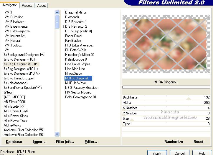 Effets>Modules Externes>Filters Unlimited 2.0 - &<Bkg Designer sf10II> - MURA Diagonal, par défaut