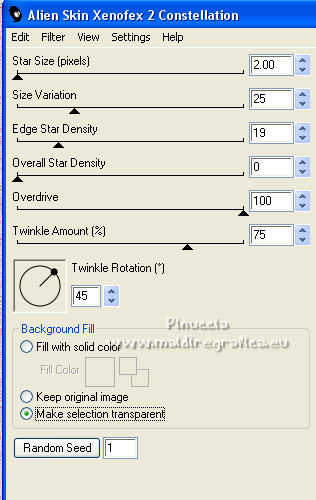 Effets>Modules Externes>Alien Skin Xenofex 2 - Constellation, cliquer sur Random Seed et ok.