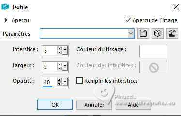 Effets>Effets de textures>Textile - couleur du tissage #ffffff.