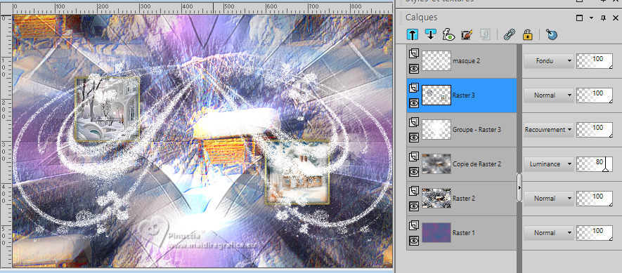 Fermer les calques 2 et 3 du masque, de la neige, et du déco (si vous l'avez fait).