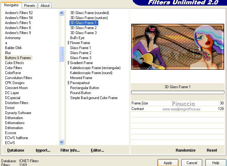 6. Effets>Modules Externes>Filters Unlimited 2.0 - Buttons & Frames - 3D Glass Frame 1.