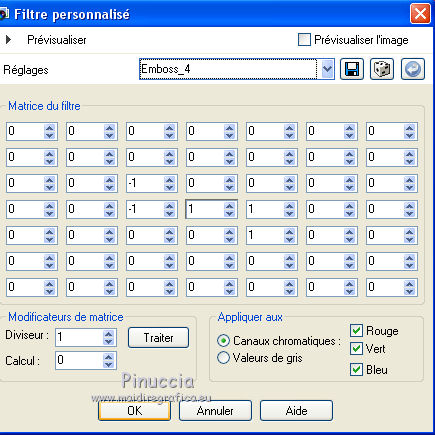 Effets>Filtre personnalisé - sélectionner le preset Emboss 4 et ok.