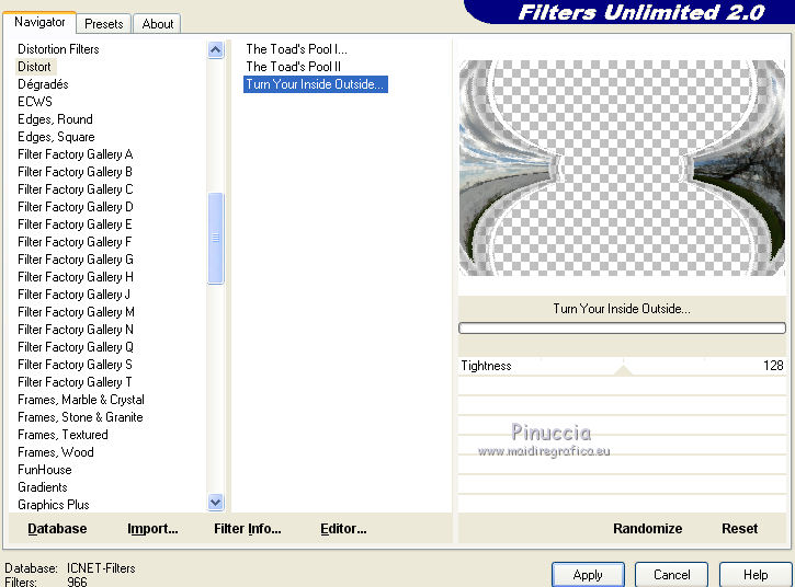 Effetti>Plugins>Filters Unlimited 2.0 - Distort - Turn Your Inside Outside.