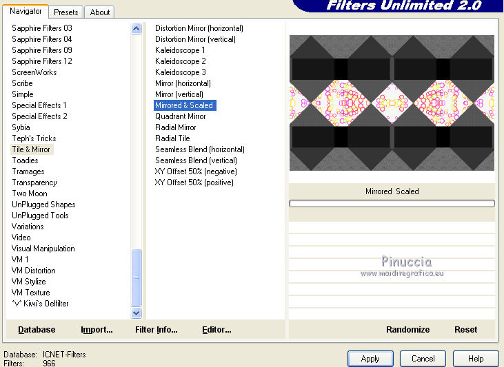 Effetti>Plugins> Filters Unlimited 20 - Tile & Mirror - Mirrored &, Scaled