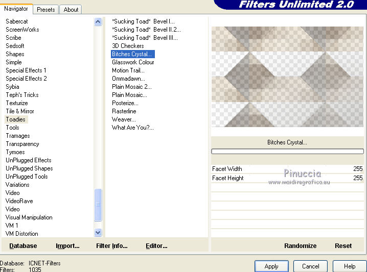 5. Effetti>Plugins>Filters Unlimited 2.0 - Toadies - Bitches Crystal.