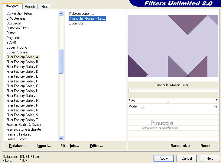 Effetti>Plugins>Filters Unlimited 2.0 - Filter factory Gallery A - Triangular Mosaic Filter.