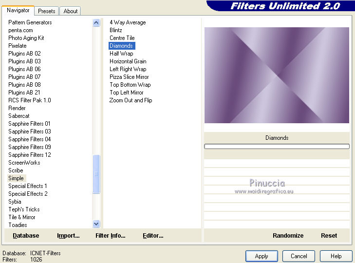 2. Effetti>Plugins>Filters Unlimited 2.0 - Simple - Diamonds.