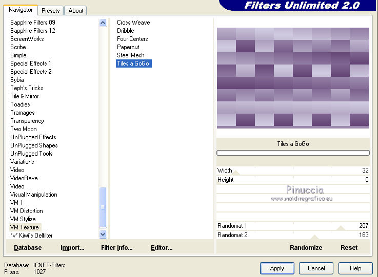 Effetti>Plugins>Filters Unlimited 2.0 - VM Texture - Tiles a GoGo.