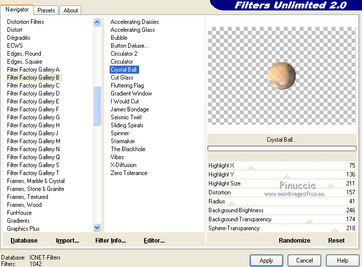 13. Effetti>Plugins>Filters Unlimited - Filter factory Gallery B - Crystal Ball.