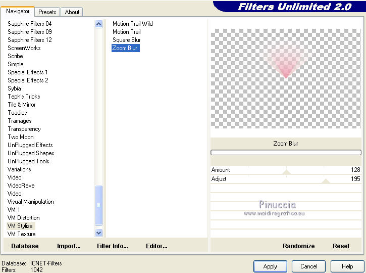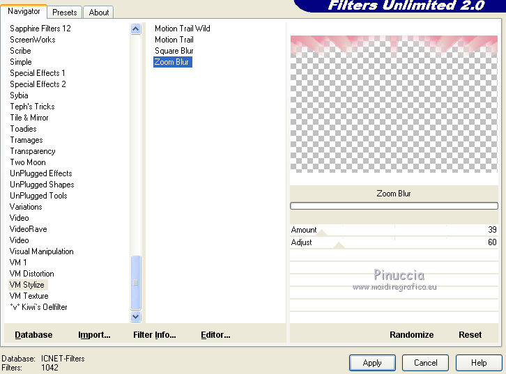 Effetti>Plugins>Filters Unlimited 2.0 - VM Stylize - Zoom blur.