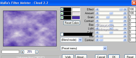 Premere successivamente il tasto Reset serve per cambiare casualmente (ragione per la quale il tuo risultato non potrà essere uguale al mio esempio), l'aspetto delle nuvole.