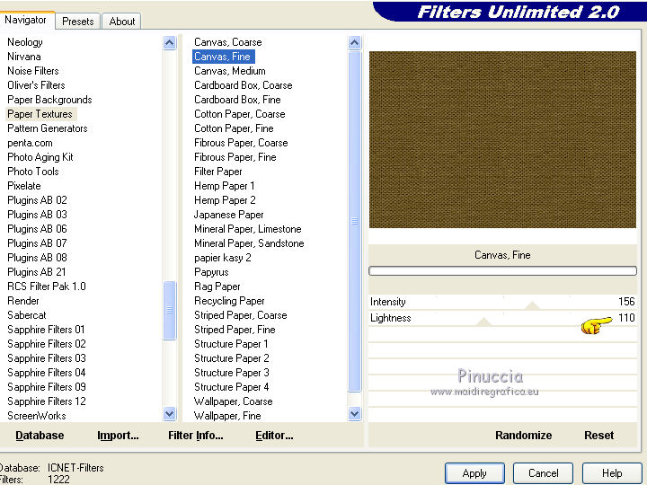 2. Effetti>Plugins>Filters Unlimited 2.0 - Paper Textures - Canvas,Fine.